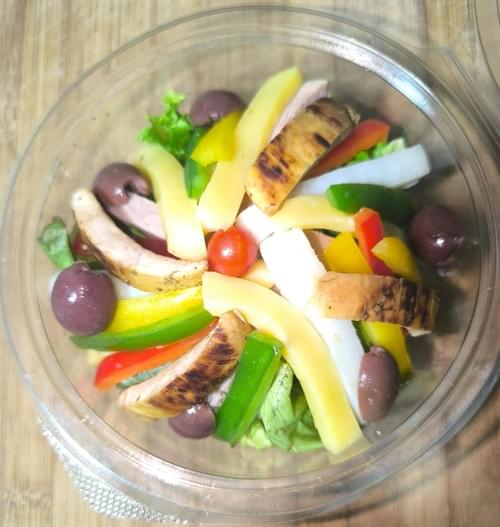 روست بيف, فراخ جريل, , بطاطس, جبنة شيدر, فلفل الوان , خس , زيتون ودريسنج التاباسكو